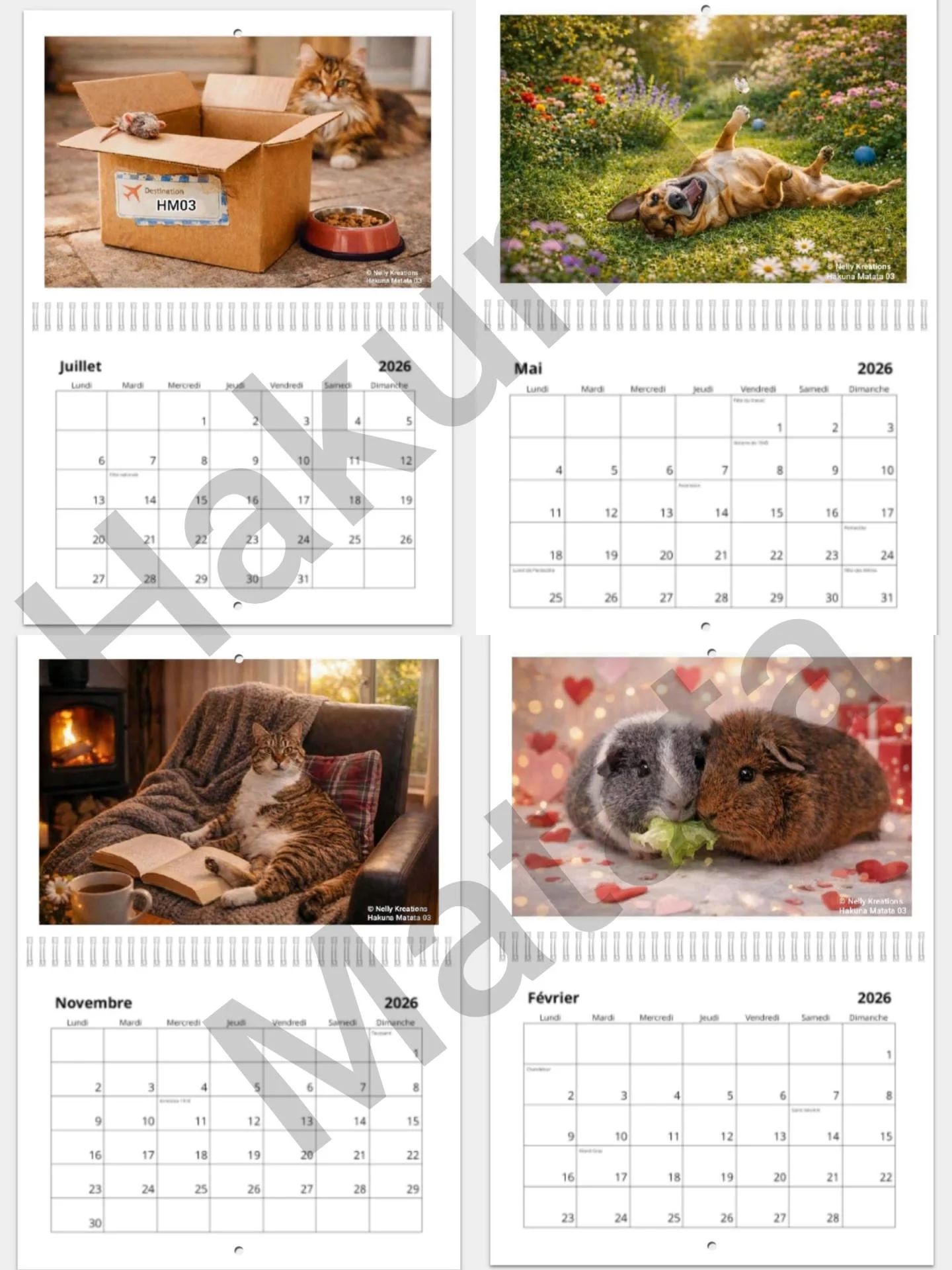 Tous les animaux présents dans ce calendrier sont des compagnons que j'ai eu la chance de garder ou que j'accompagne encore en tant que pet-sitter.